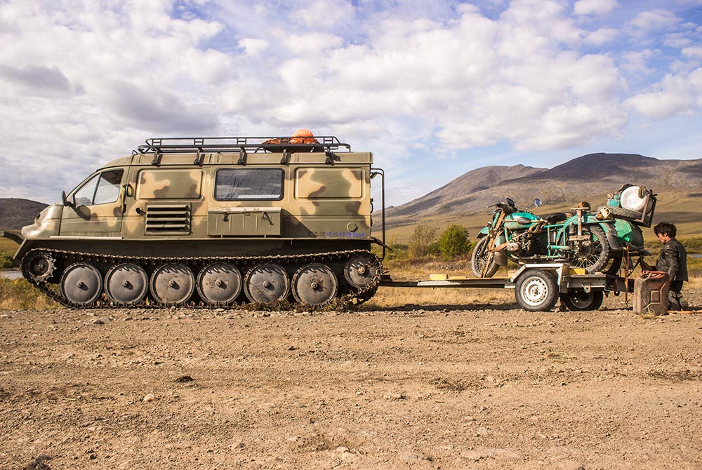 43.000 Kilometer tuckert die kleine Künstlerkollektiv über feinsten Teer, endlose Holperstraßen, wüste Waldwege, durch tiefe Sümpfe und reißende Flüsse immer Richtung Osten - mit unzähligen Stopps und Einladungen zum Bleiben. Die Menschen, denen sie begegnen, öffnen ihnen ihre Häuser, helfen bei Reparaturen, und erzählen ihre Geschichte.
