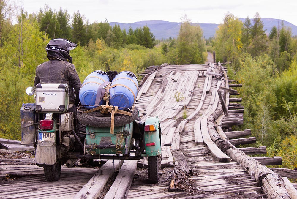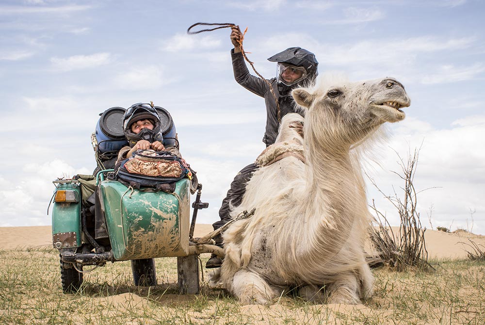 Sie überwinden die «Road of Bones», stehen in Kasachstan vor Gericht und irren durch die mongolische Steppe. Den Fluss Kolyma befahren sie 1600 Kilometer bis zur Mündung per Floß - angetrieben von den Motoren ihrer Maschinen. Nach der Beringstrasse geht es an der Westküste bis nach Los Angeles und schließlich bis zum Ziel ihrer abenteuerlichen Reise: New York City.