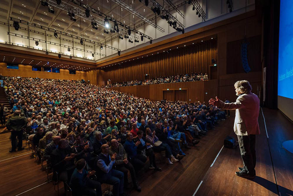• Reinhold Messner signiert bereits eine Stunde vor Beginn am Büchertisch seine Bücher, die vor Ort erhältlich sind.