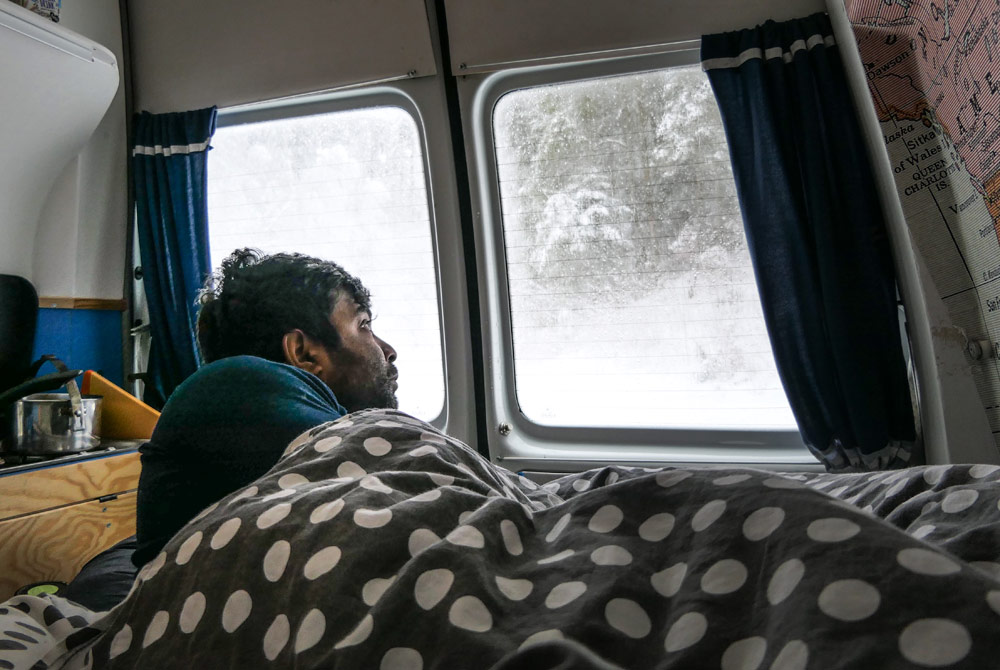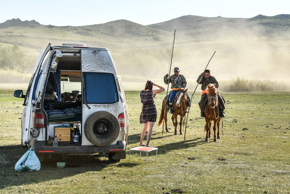 Die Entscheidung fällt spontan an einem Winterabend in Biel, und schon am nächsten Morgen beginnen die Vorbereitungen: Wohnung kündigen, entrümpeln, VW Bus ausbauen. Das liegt nun vier Jahre zurück, die Journalistin und der Abenteurer haben sich längst an das Leben als moderne Nomaden gewöhnt. Sie sind in ganz Europa und Zentralasien zuhause, ohne auch nur einen Funken Sehnsucht nach festem Wohnsitz oder geregelten Arbeitszeiten. Sie lieben ihre reduzierte Lebensweise, daran änderte auch eine Frontalkollision mit einem Geisterfahrer auf der Autobahn nichts.